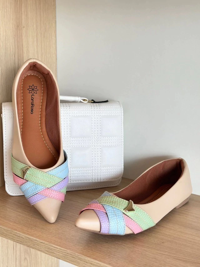 SAPATILHA BROCHE CRUZADO BICO FINO COLORS NUDE