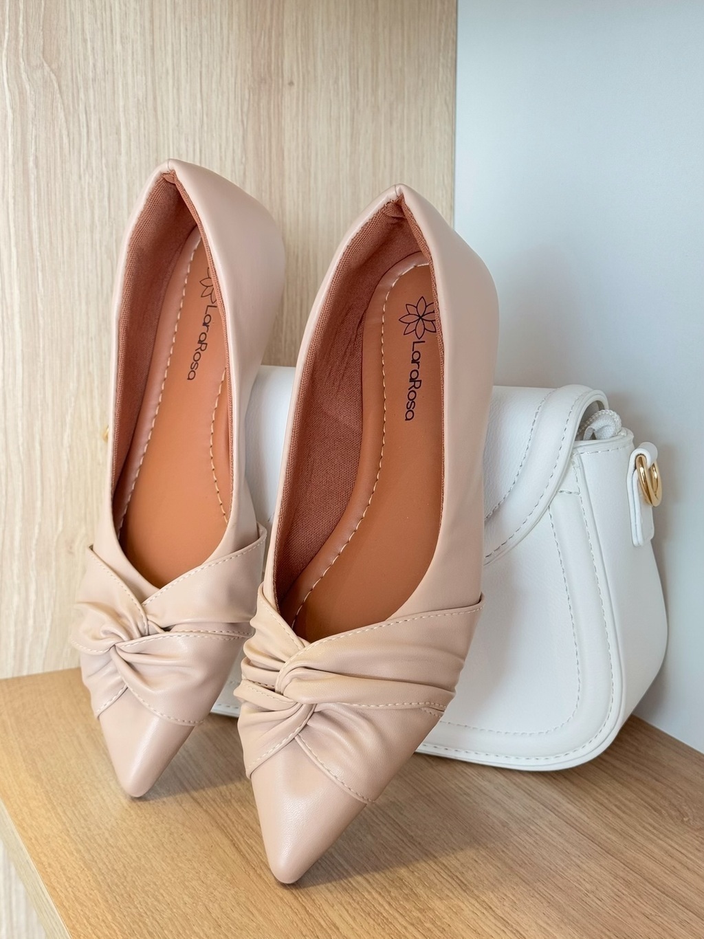 SAPATILHA BROCHE CRUZADO BICO FINO NUDE