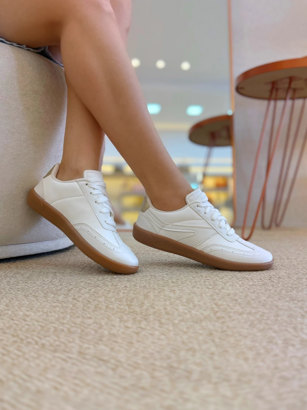 Com um visual clean e sofisticado, este tênis combina facilmente com jeans, vestidos, saias e até looks mais arrumados, proporcionando versatilidade para o dia a dia sem abrir mão do estilo.