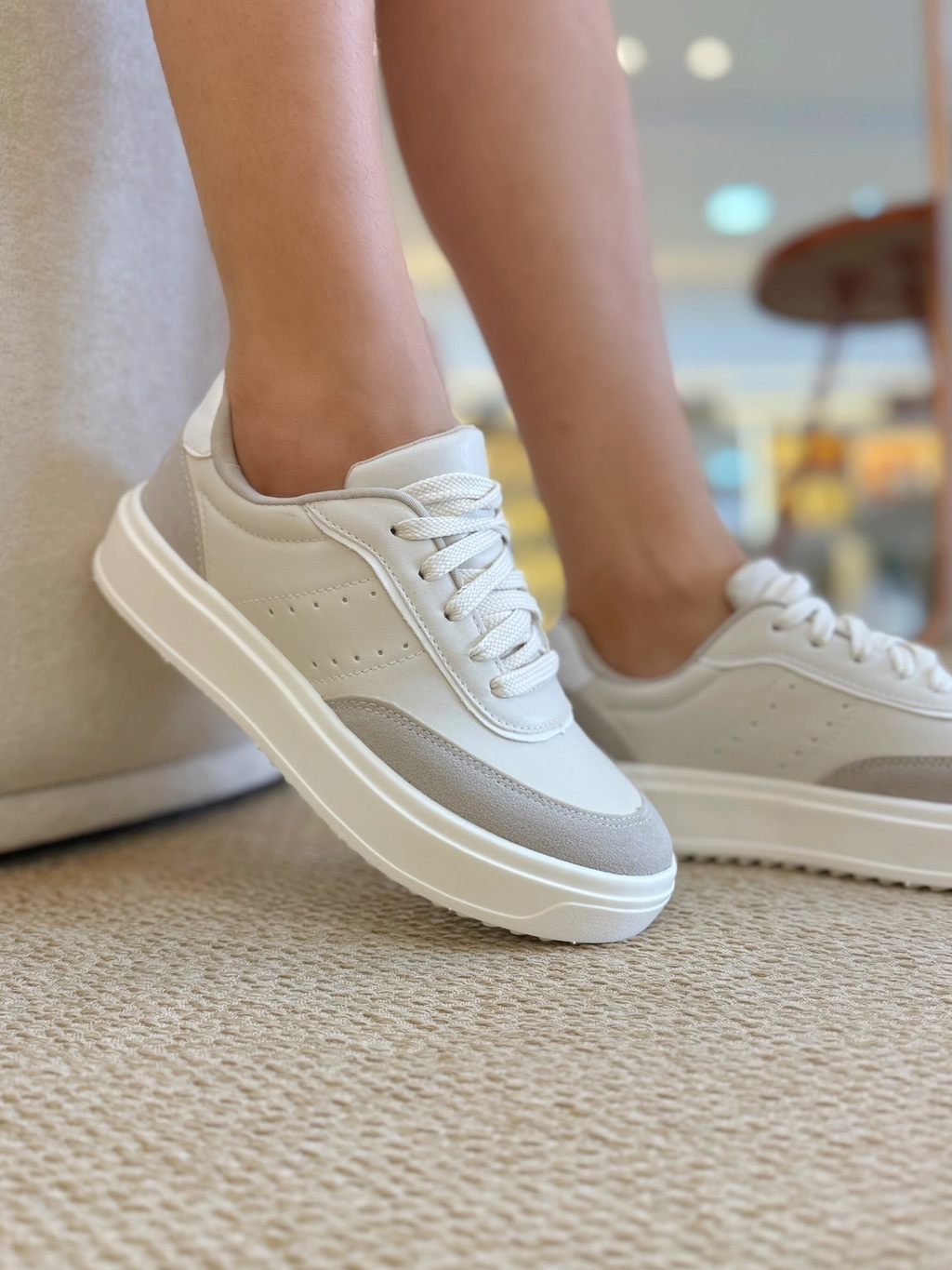 O Tênis Feminino Plataforma Off White com Detalhes Níquel é a escolha perfeita para quem valoriza estilo, conforto e versatilidade. Seu design moderno une o charme do acabamento em camurça sintética com a sofisticação do tom off white, criando um visual elegante e fácil de combinar.